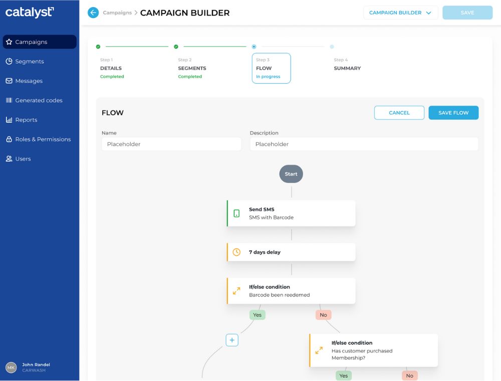 Create logic-based drip campaigns based on customer behaviors and interactions, such as a barcode redemption, purchase or visit to the wash.
