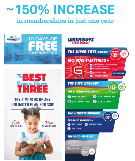 To increase traffic and boost membership sales, Suds introduced a campaign that offered a discount on the first month of memberships. The promotion was advertised through print and digital channels, while the WASHGUYS on-site team reinforced the offer, converting new members and providing an exceptional experience. Just two short months after launching the first campaign, WASHGUYS had added over 5,000 new members and average monthly churn was lower than ever at 3.5%.