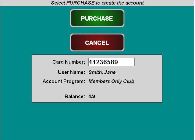 To issue a new account, go to the Sales tab at the top of the screen. Follow the instructions in gray at the top of the sales screen. To purchase a new account, click on the account.