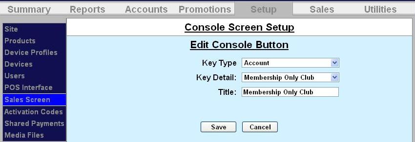 To setup the sales buttons, go to the Setup tab and click Sales on the left frame.