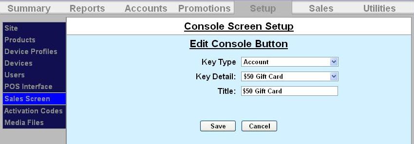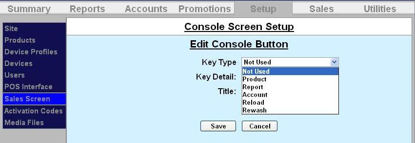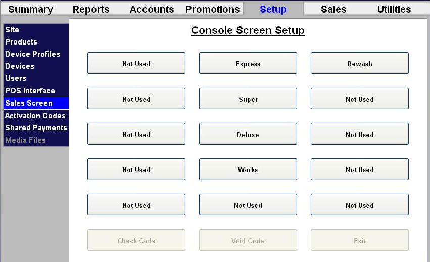 To setup the sales buttons, go to the Setup tab and click Sales on the left frame.
