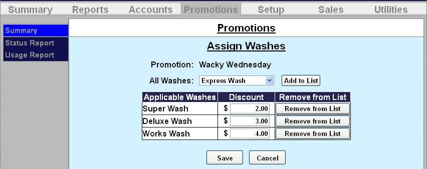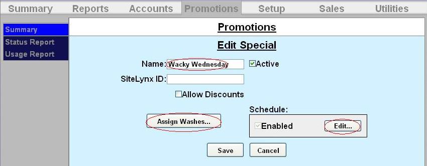 Note: The Wash Select II® can only support two specials running at the same time. All other entry systems can support multiple specials running at the same time.