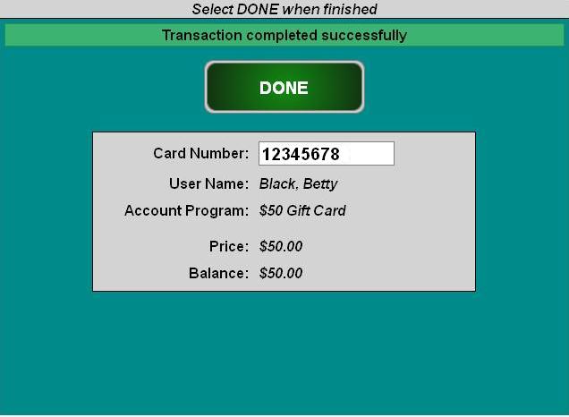 Select the account from the drop-down menu. In this example, we are setting up the $50 Gift Card sales button.
