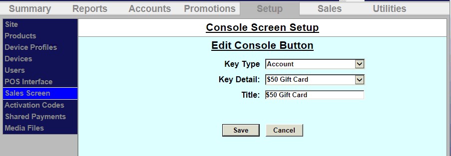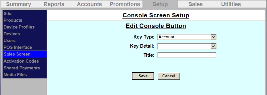 To setup the sales buttons, go to the Setup tab and click Sales on the left frame.